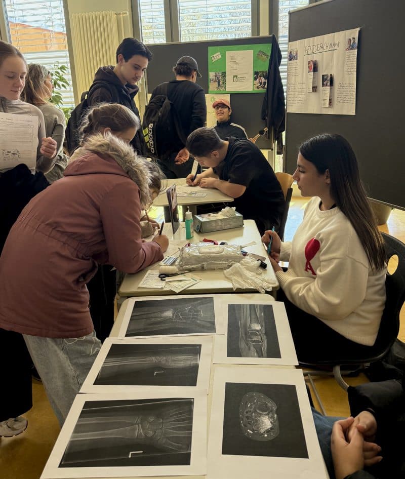 Der Z-Trakt verwandelte sich dabei in eine kleine Messe: Zahlreiche Stände luden zum Entdecken ein. Bunte Plakate, anschauliche Infomaterialien und kreative Präsentationen machten deutlich, wie vielfältig die Praktikumsplätze waren – vom Handwerksbetrieb über soziale Einrichtungen bis hin zu Bürojobs. Die eine oder andere Geschichte aus dem „echten Arbeitsleben“ sorgten auch für ein paar Lacher.