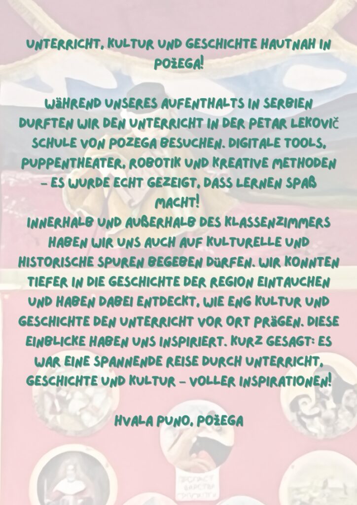 Im Rahmen des Erasmus+-Programms erhielten Lehrkräfte unserer Schule die Möglichkeit, beim Jobshadowing in Serbien wertvolle Einblicke in ein anderes Bildungssystem zu gewinnen.